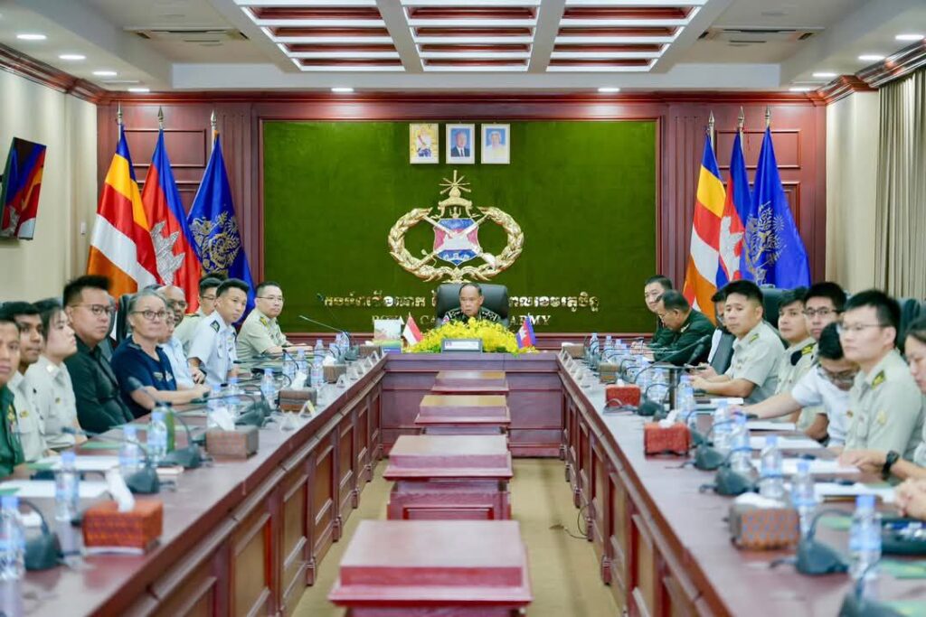 ភ្នំពេញ៖ នៅថ្ងៃទី២៨ ខែមេសា ឆ្នាំ២០២៥ ប្រតិភូមហាវិទ្យាល័យបញ្ជាការសេនាធិការ GOH KENG SWEE នៃកងទ័ពសិង្ហបុរី ដឹកនាំដោយ ឧត្តមសេនីយ៍ត្រី TAN TIONG KEAT បានចូលជួបសម្ដែងការគួរសម ជាមួយនាយឧត្តមសេនីយ៍ ម៉ៅ សុផាន់ អគ្គមេបញ្ជាការរងនៃកងយុទ្ធពលខេមរភូមិន្ទ មេបញ្ជាការកងទ័ពជើងគោក នៅទីបញ្ជាការ បញ្ជាការដ្ឋានកងទ័ពជើងគោក ក្នុងដំណើរទស្សនកិច្ចសិក្សាជាលើកដំបូងនៅកម្ពុជា។