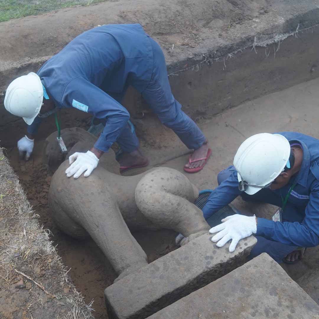 អាជ្ញាធរជាតិព្រះវិហារលើកចម្លាក់តោ១ ចេញពីរណ្តៅកំណាយស្រាវជ្រាវ ក្រោយឃើញរំលំកប់ក្នុងដីជម្រៅប្រមាណ១ម៉ែត្រ អស់រាប់ឆ្នាំ